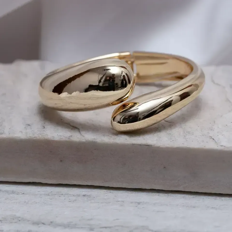BRACELETE ABAULADO ABERTO BANHO OURO 18K