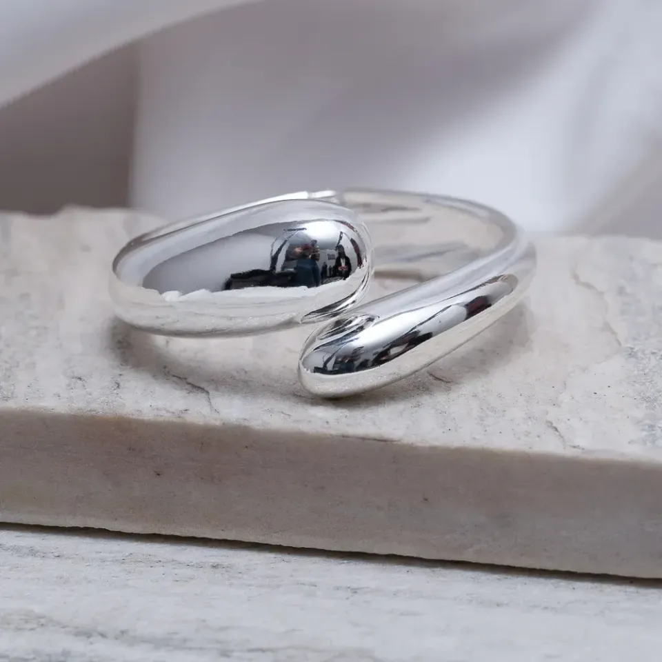 BRACELETE ABAULADO ABERTO BANHO PRATA