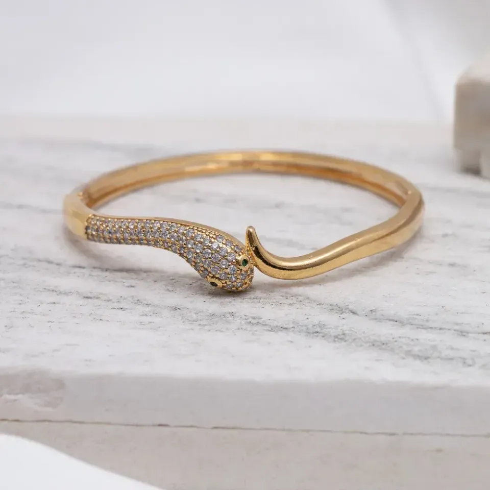 BRACELETE COBRACRAVEJADO COM ZIRCÔNIAS CRISTAIS BANHO OURO 18K