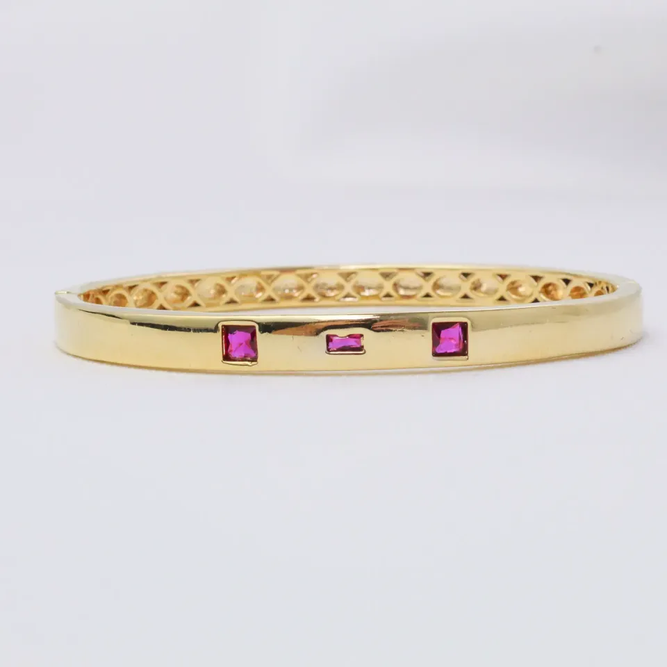 BRACELETE COM 3 ZIRCÔNIAS COR PINK BANHO OURO 18K