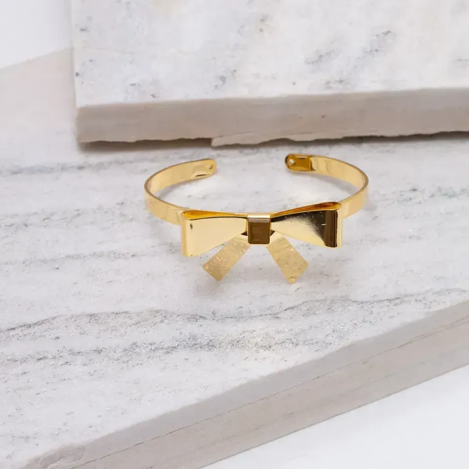 Bracelete Liso com Detalhe de Laço em banho Ouro 18K