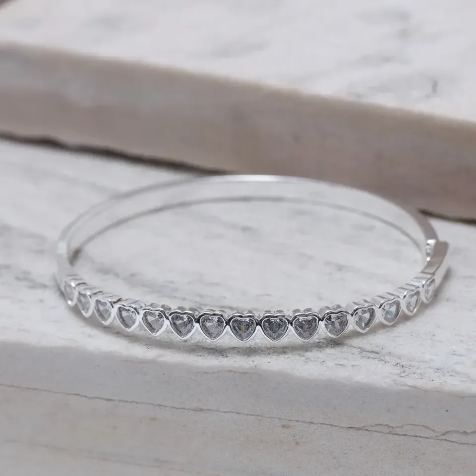 BRACELETE CORAÇÃO COM PEDRAS CRISTAIS BANHO PRATA