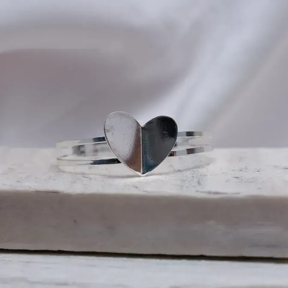 BRACELETE CORAÇÃO LISO BANHO PRATA