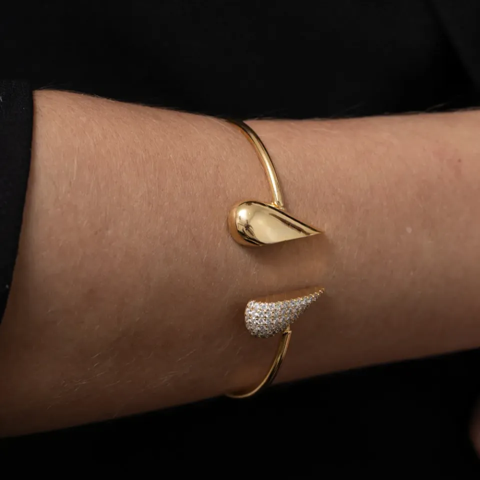 BRACELETE CORAÇÃO METADE LISO METADE COM CRAVEJADO BANHO OURO 18K