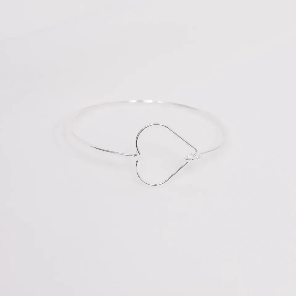 BRACELETE LISO CORAÇÃO BANHO PRATA