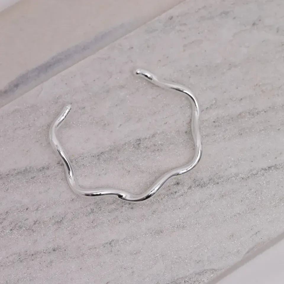 BRACELETE LISO ONDULADO GROSSO BANHO PRATA