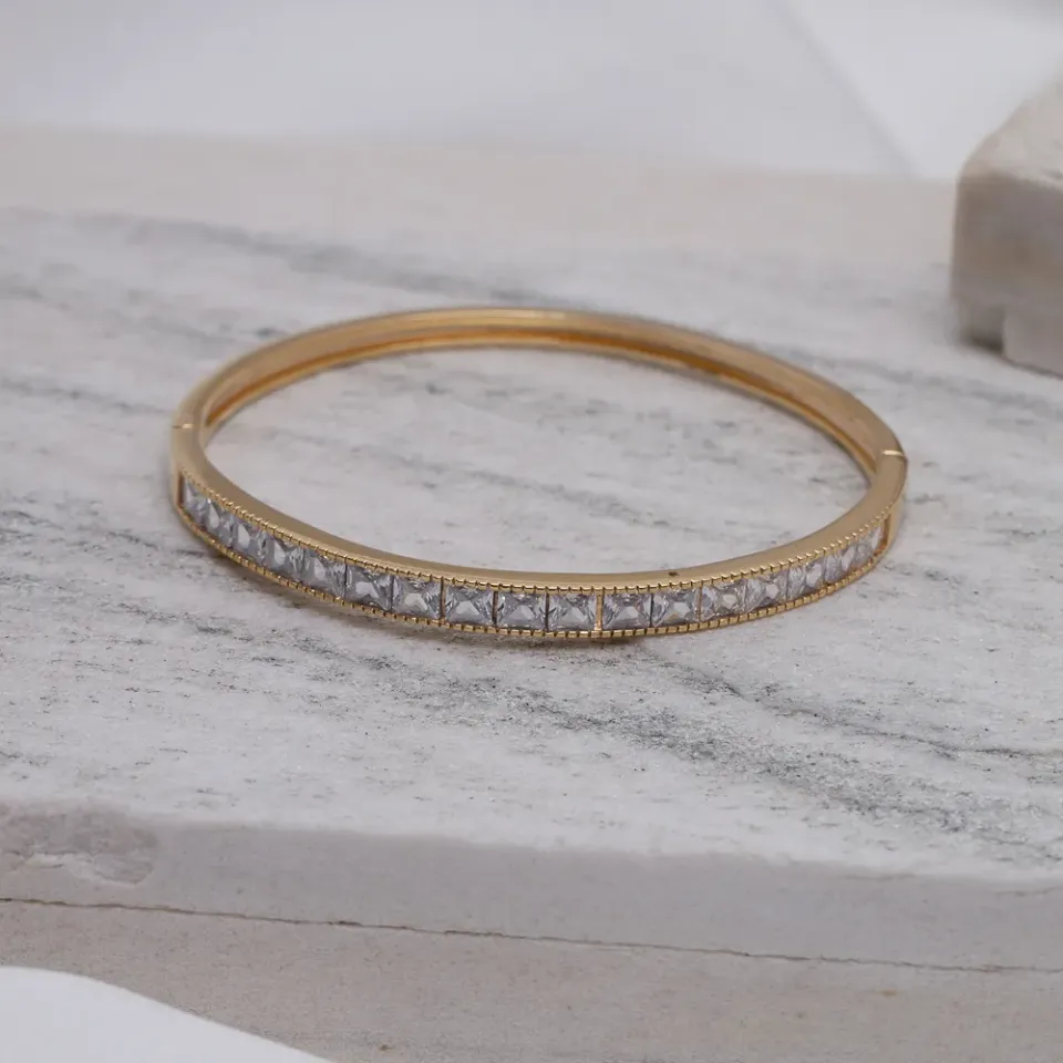 BRACELETE NAVETE CRISTAL BANHO OURO 18K