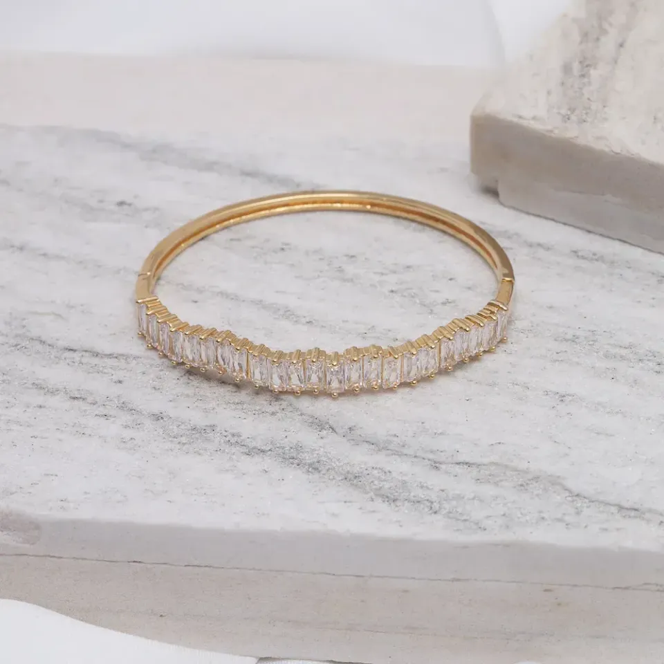 BRACELETE COM ZIRCÔNIAS CRISTAIS BANHO OURO 18K