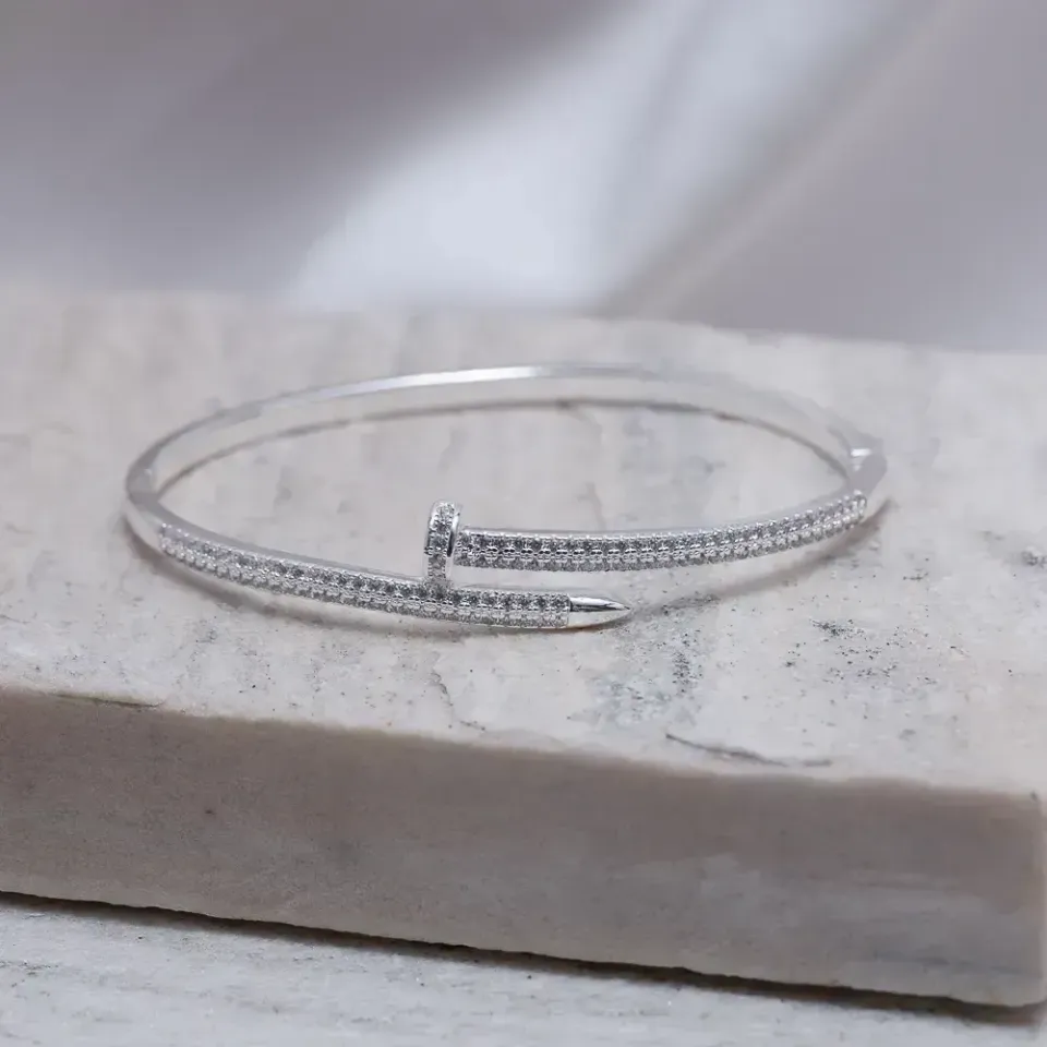 BRACELETE PREGO CRAVEJADO COM ZIRCÔNIAS BANHO PRATA