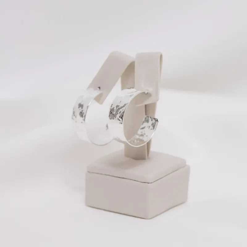 Brinco Argola Larga Amassada em banho Prata