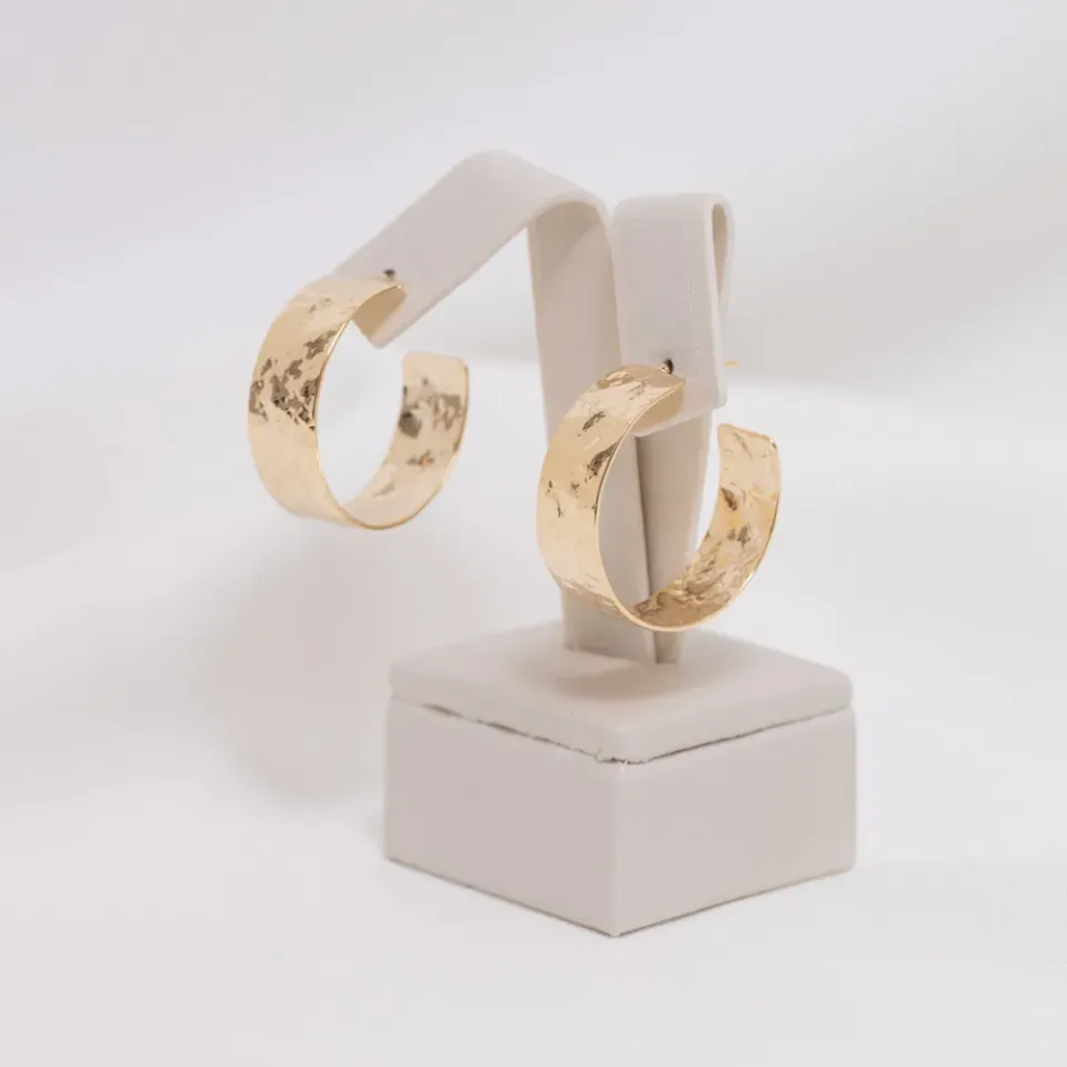 BRINCO ARGOLA LARGA TRABALHADA BANHO OURO 18K