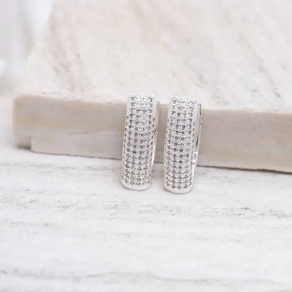 BRICO ARGOLA LOSANGO CRAVEJADA COM ZIRCÔNIAS CRISTAIS BANHO PRATA