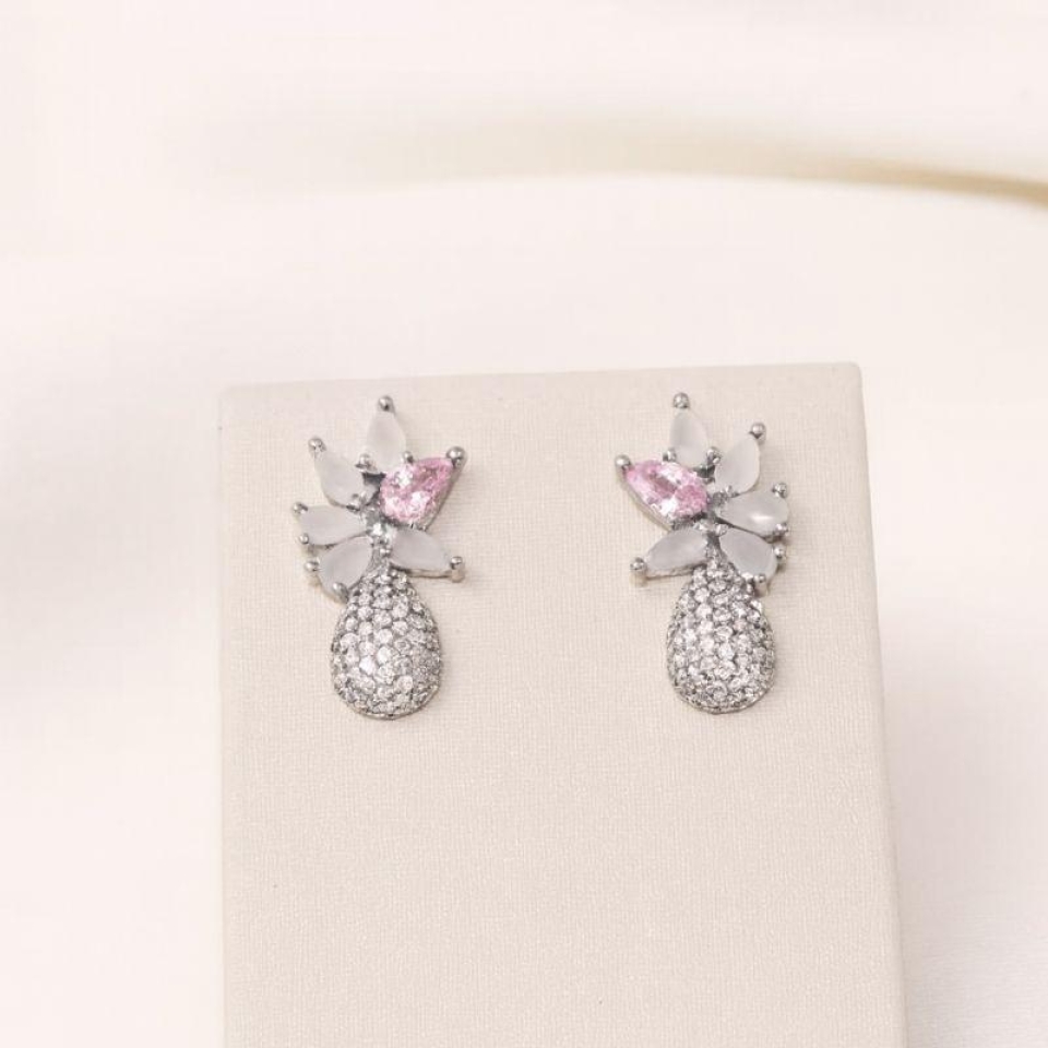 BRINCO ABACAXI CRAVEJADO COM ZIRCÔNIAS BANHO PRATA