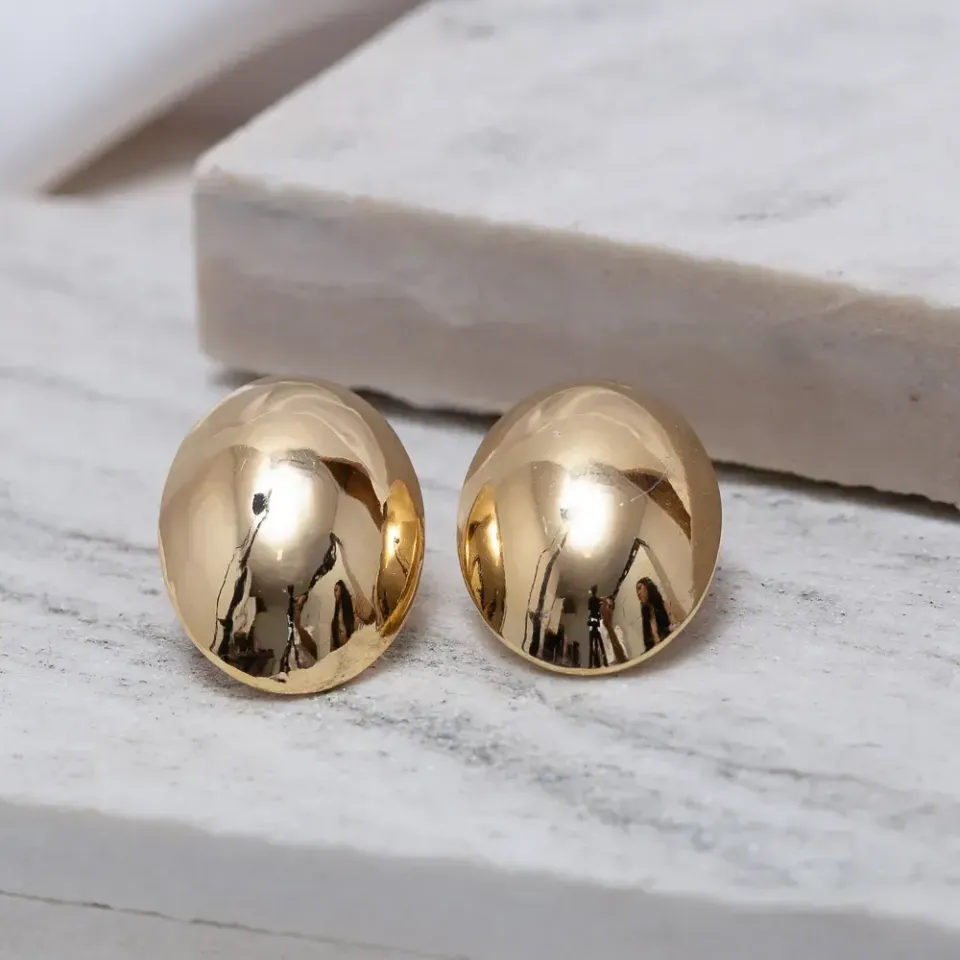 BRINCO BOTÃO OVAL ABAULADO LISO BANHO OURO 18K