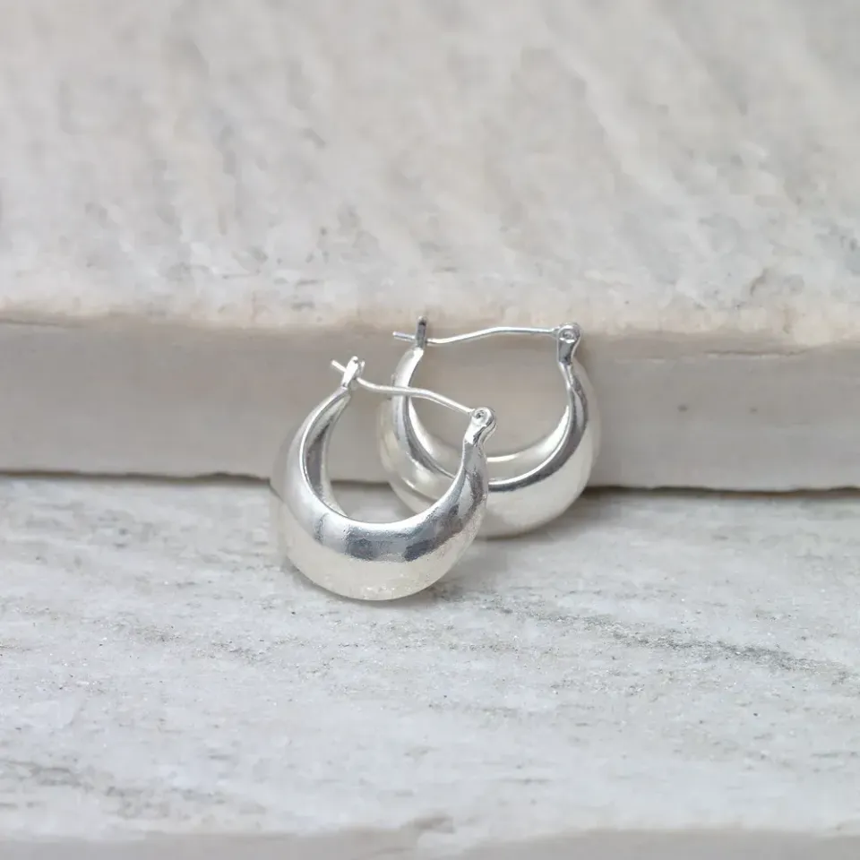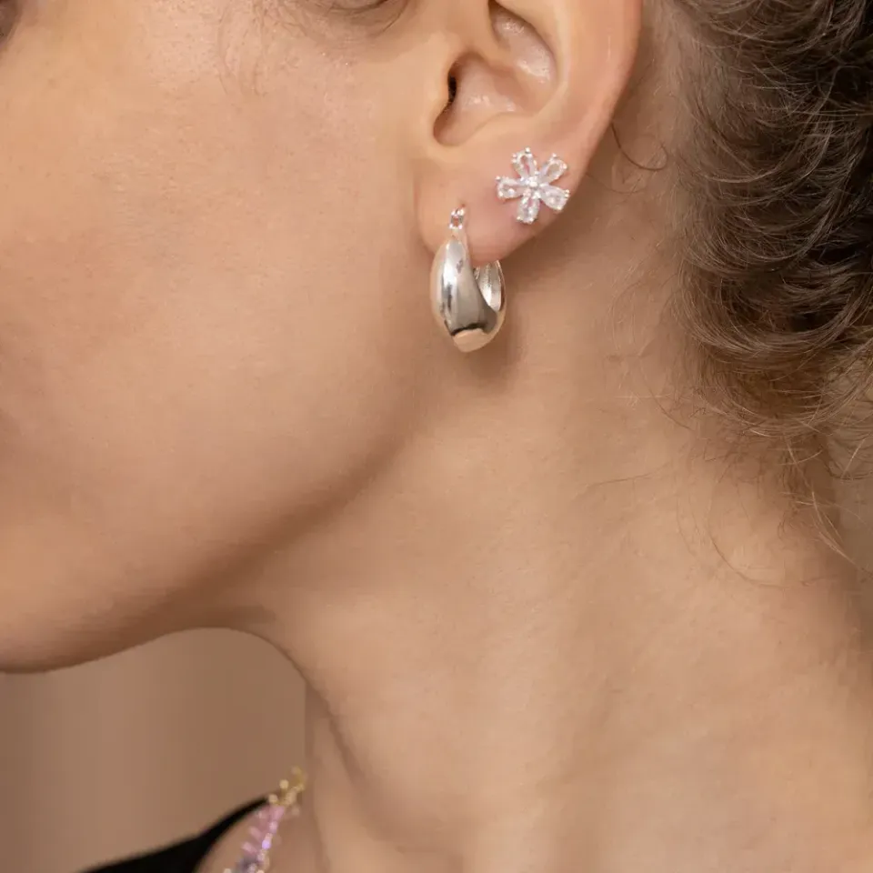 BRINCO ARGOLA ABAULADA FECHO JOIA BANHO PRATA