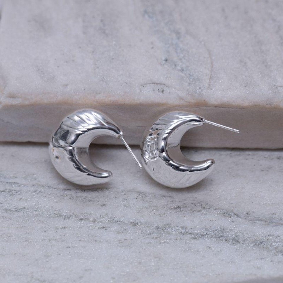 BRINCO ARGOLA MEIA LUA ABAULADA BANHO PRATA