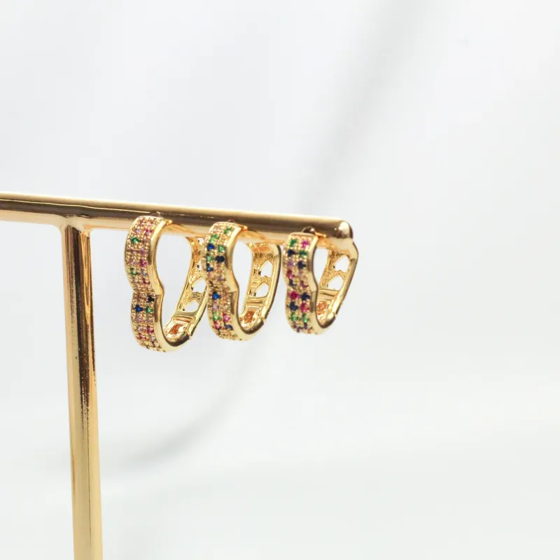 BRINCO ARGOLA CORAÇÃO COM ZIRCÔNIAS COLORIDAS G BANHO OURO 18K