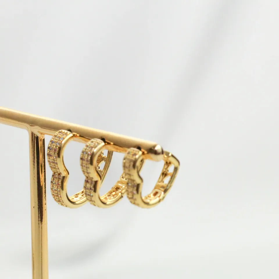 BRINCO ARGOLA CORAÇÃO COM ZIRCÔNIAS CRISTAIS M BANHO OURO 18K