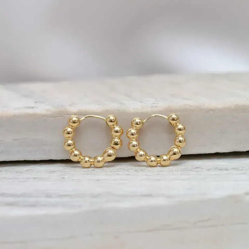 BRINCO ARGOLA DE BOLINHAS BANHO OURO 18K