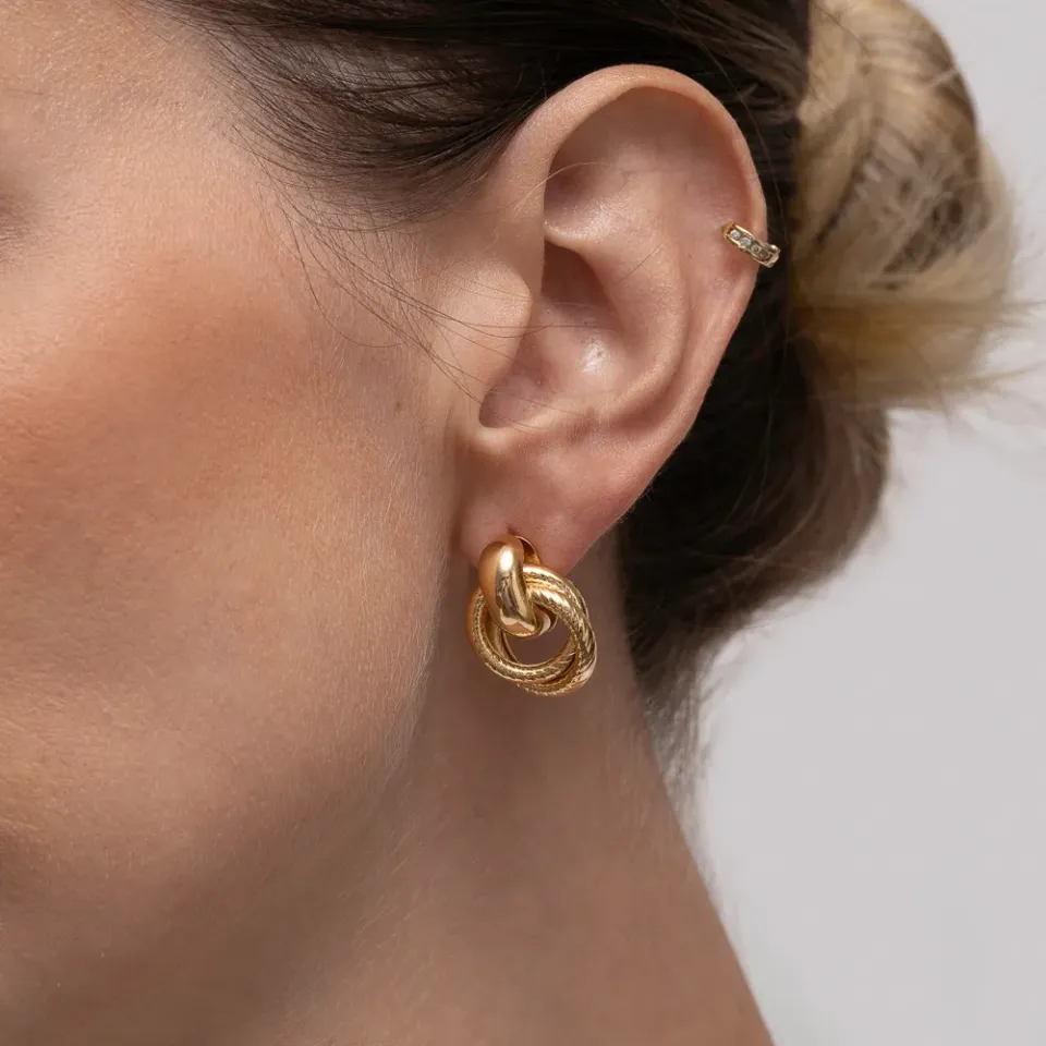 BRINCO ARGOLA DUPLA TRABALHADA BANHO OURO 18K