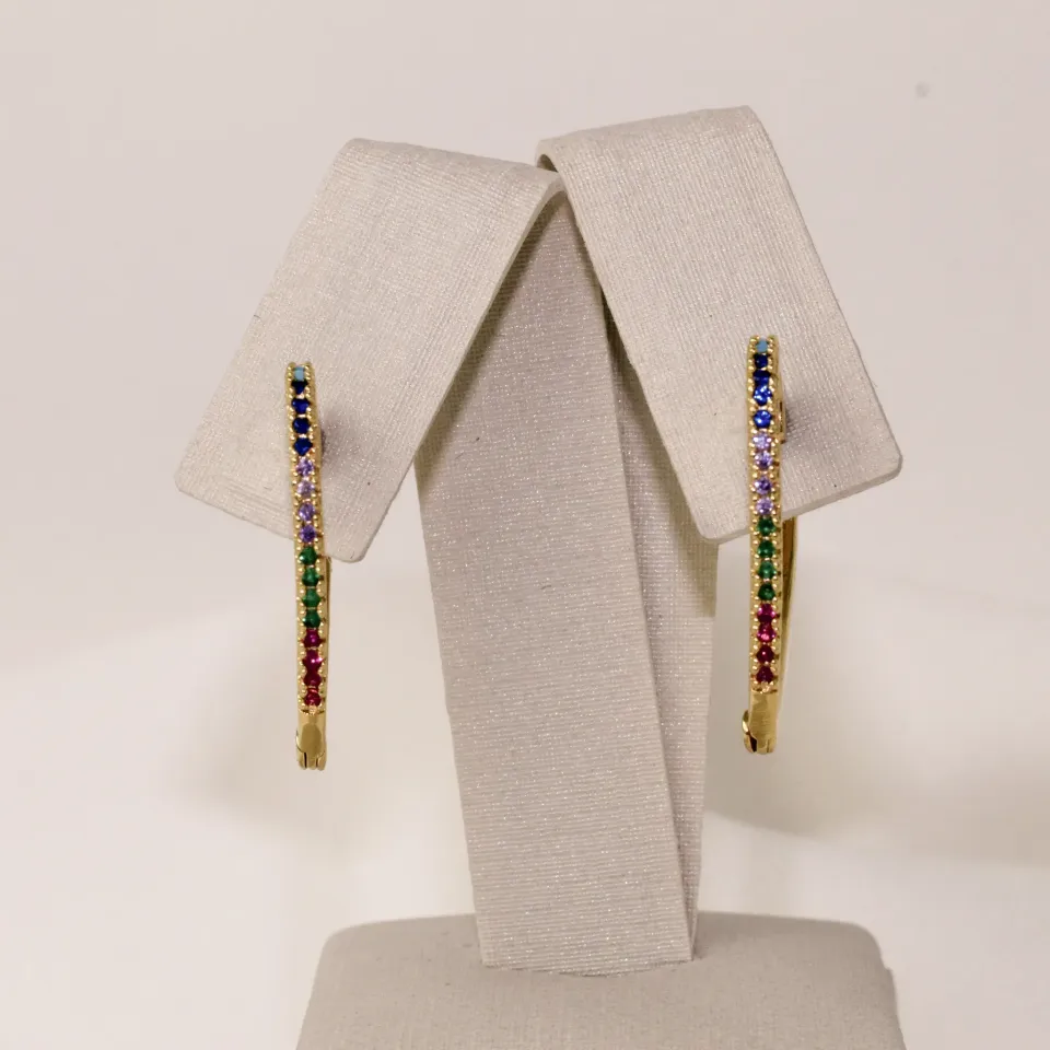 BRINCO ARGOLA FINA CORAÇÃO ZIRCÔNIA COLORIDA