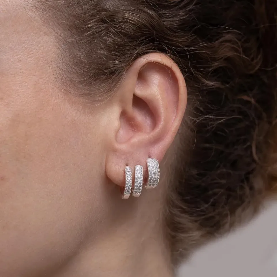 BRINCO ARGOLA FINA CRAVEJADA COM ZIRCÔNIAS BANHO PRATA