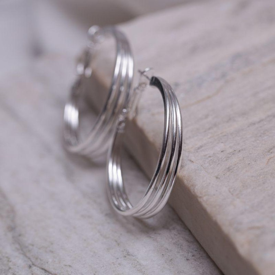 BRINCO ARGOLA GRANDE TRIPLA BANHO PRATA