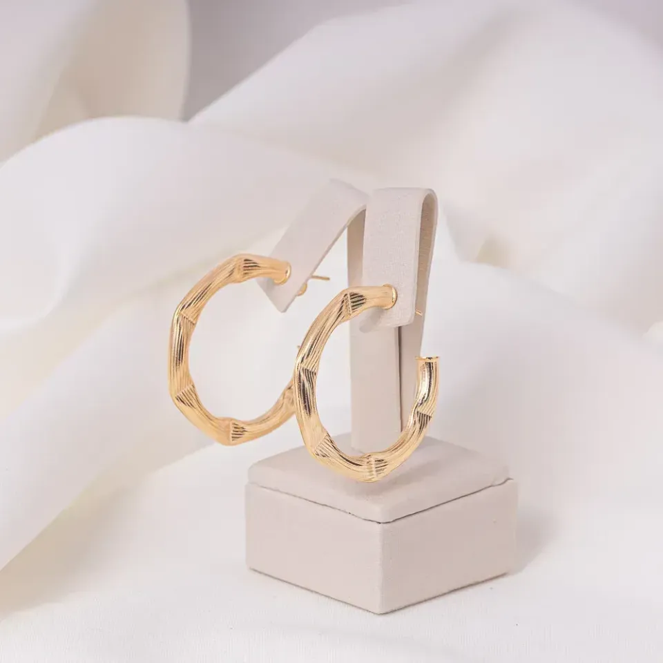 BRINCO ARGOLA AMASSADA RISCADA BANHO OURO 18K