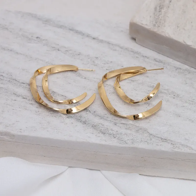 BRINCO ARGOLA G DUPLA TORCIDA BANHO OURO 18K