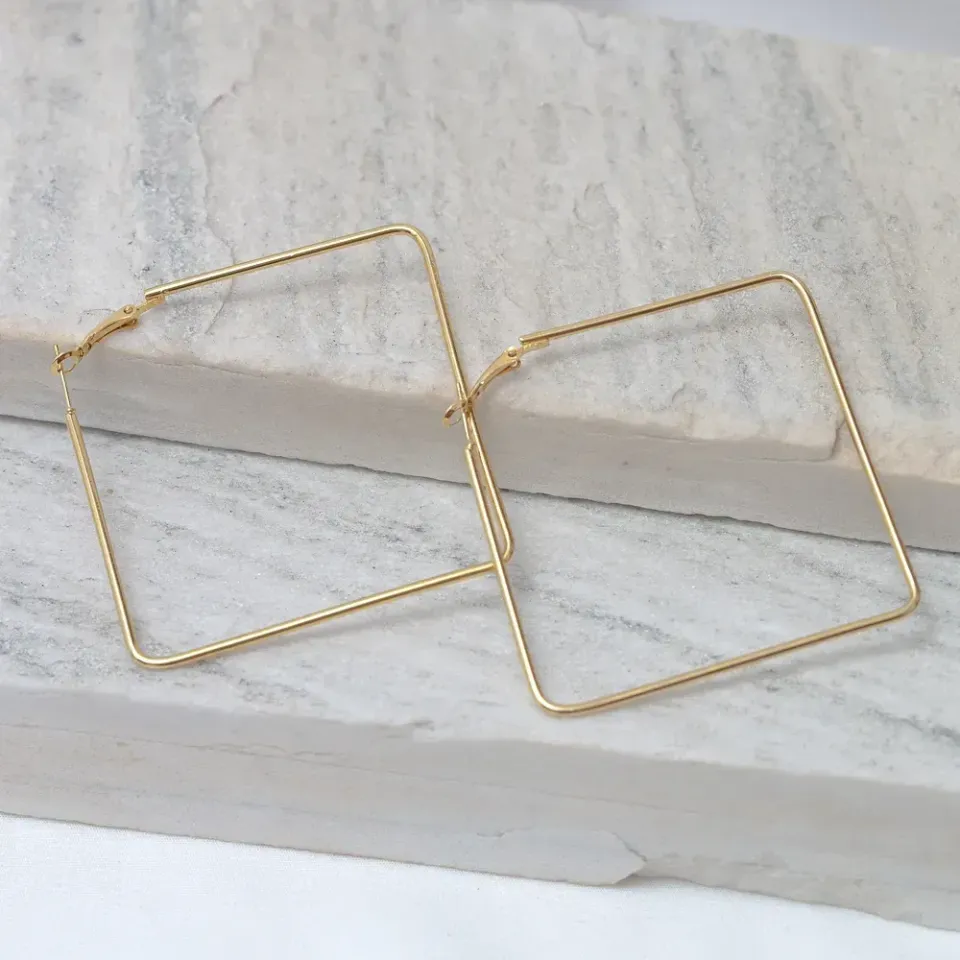 BRINCO ARGOLA G QUADRADA BANHO OURO 18K