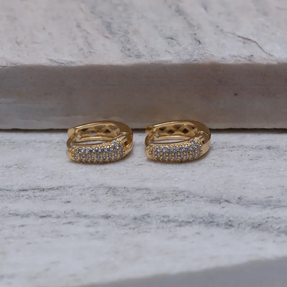 BRINCO ARGOLA GOTA COM ZIRCÔNIAS CRISTAIS BANHO OURO 18K