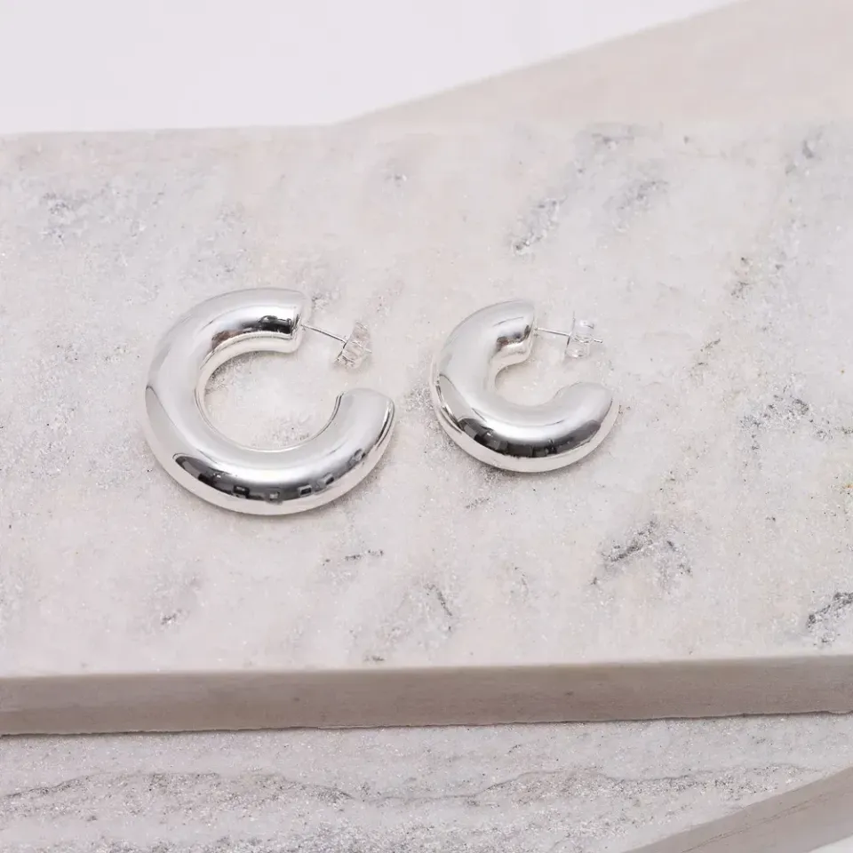 BRINCO ARGOLA PEQUENA ABAULADA BANHO PRATA
