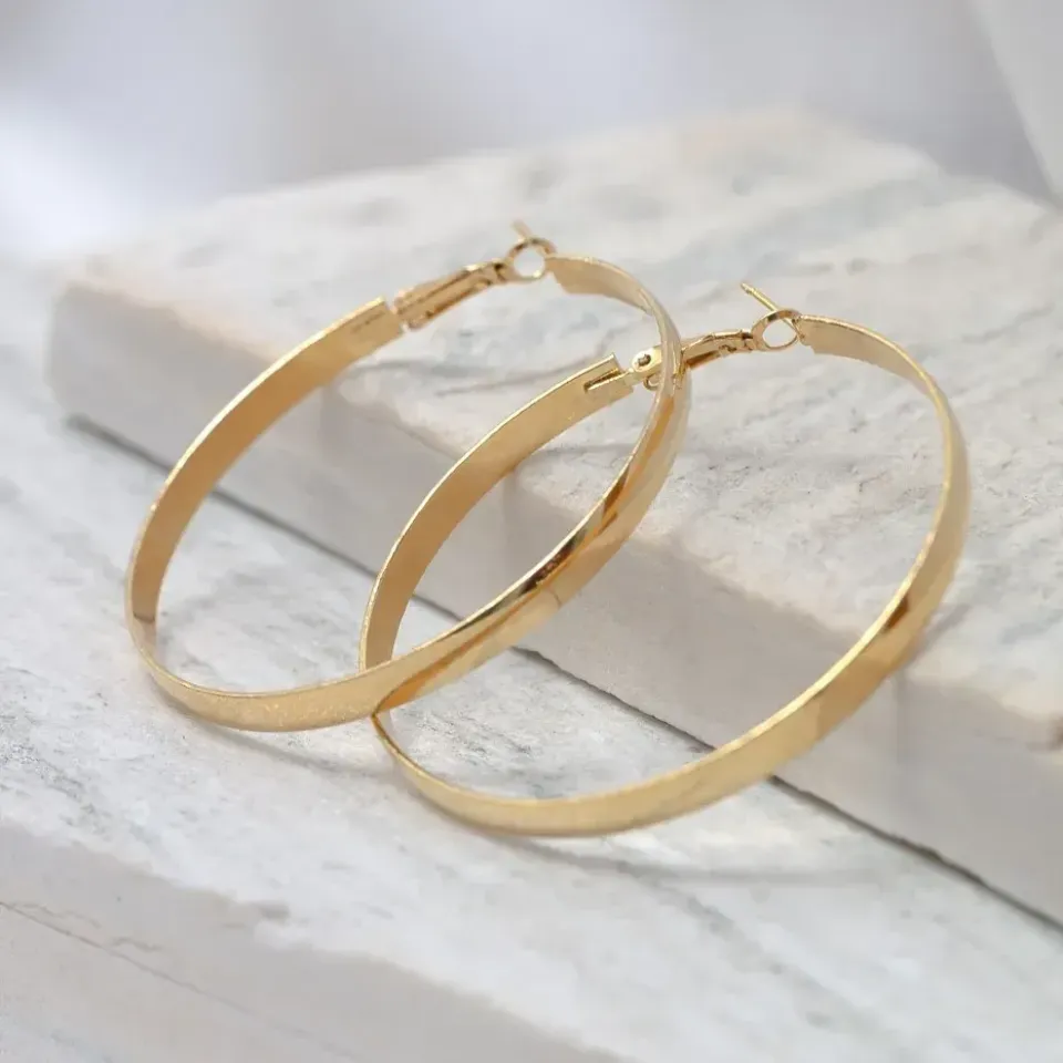 BRINCO ARGOLA GRANDE LARGA BANHO OURO 18K