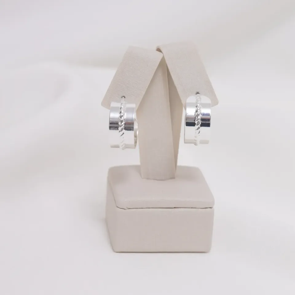 BRINCO ARGOLA LARGA TRABALHADA BANHO PRATA