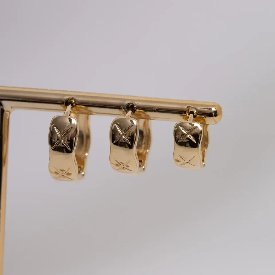 BRINCO ARGOLA LISA COM X TRIO M BANHO OURO 18K