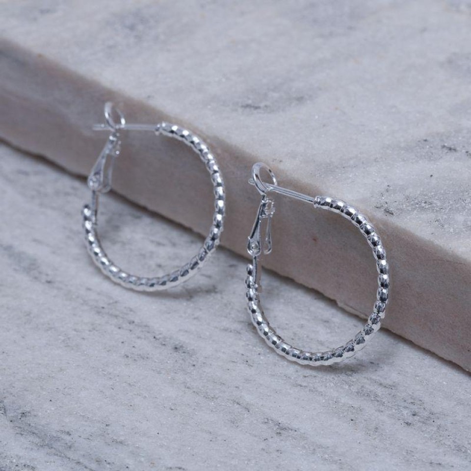 BRINCO ARGOLA ONDULADA MÉDIA BANHO PRATA
