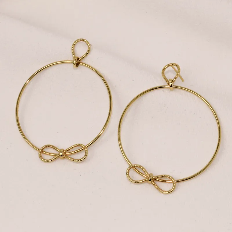 BRINCO ARGOLA LISO COM LAÇO BANHO OURO 18K