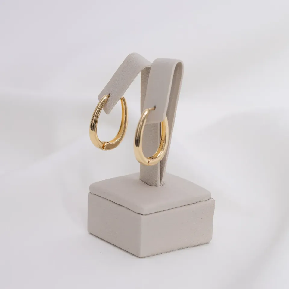 BRINCO ARGOLA LISO OVAL BANHO OURO 18K