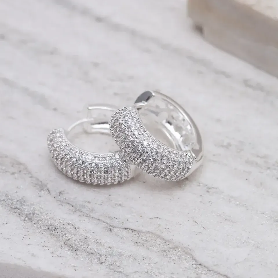 BRINCO ARGOLA M CRAVEJADA COM ZIRCÔNIAS CRISTAIS BANHO PRATA