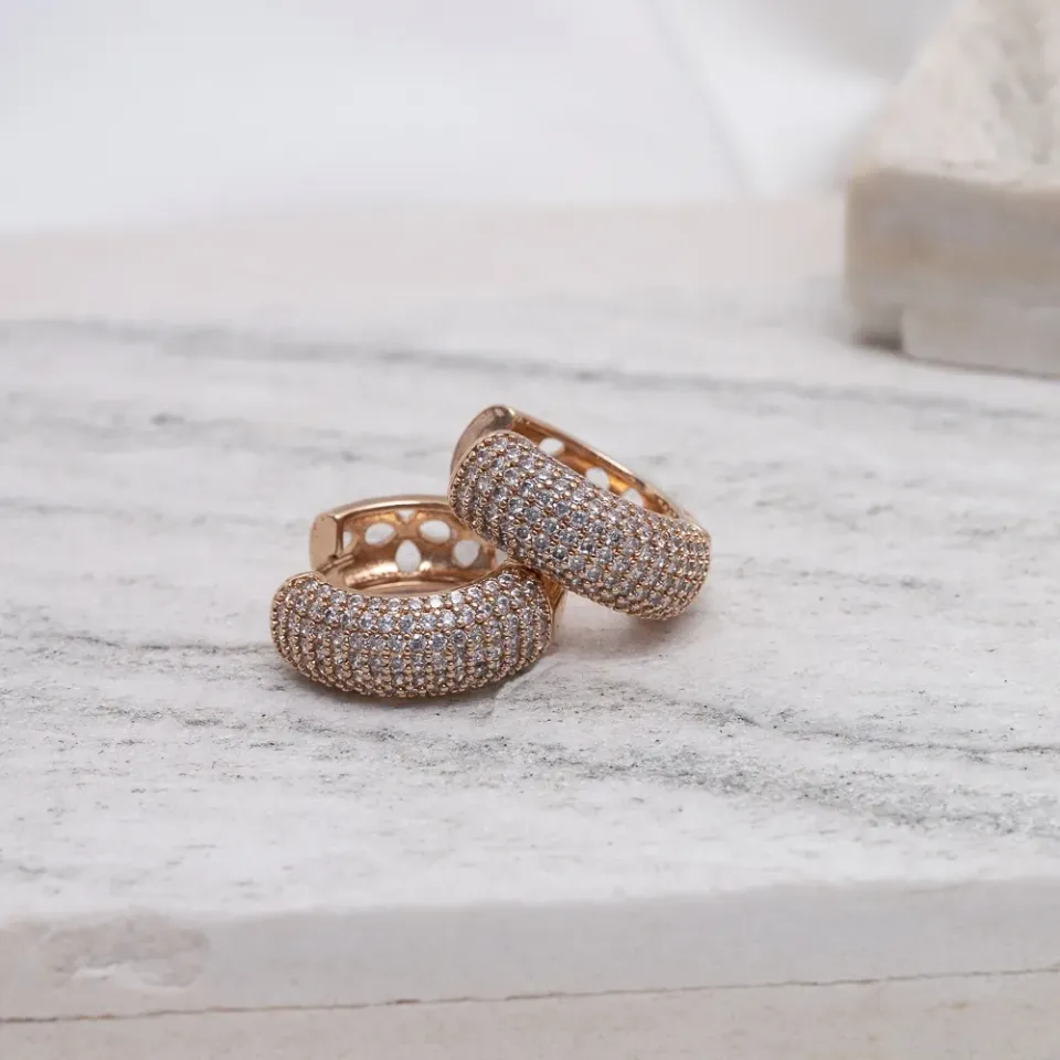 BRINCO ARGOLA MÉDIA ZIRCÔNIA CRAVEJADA BANHO ROSÉ