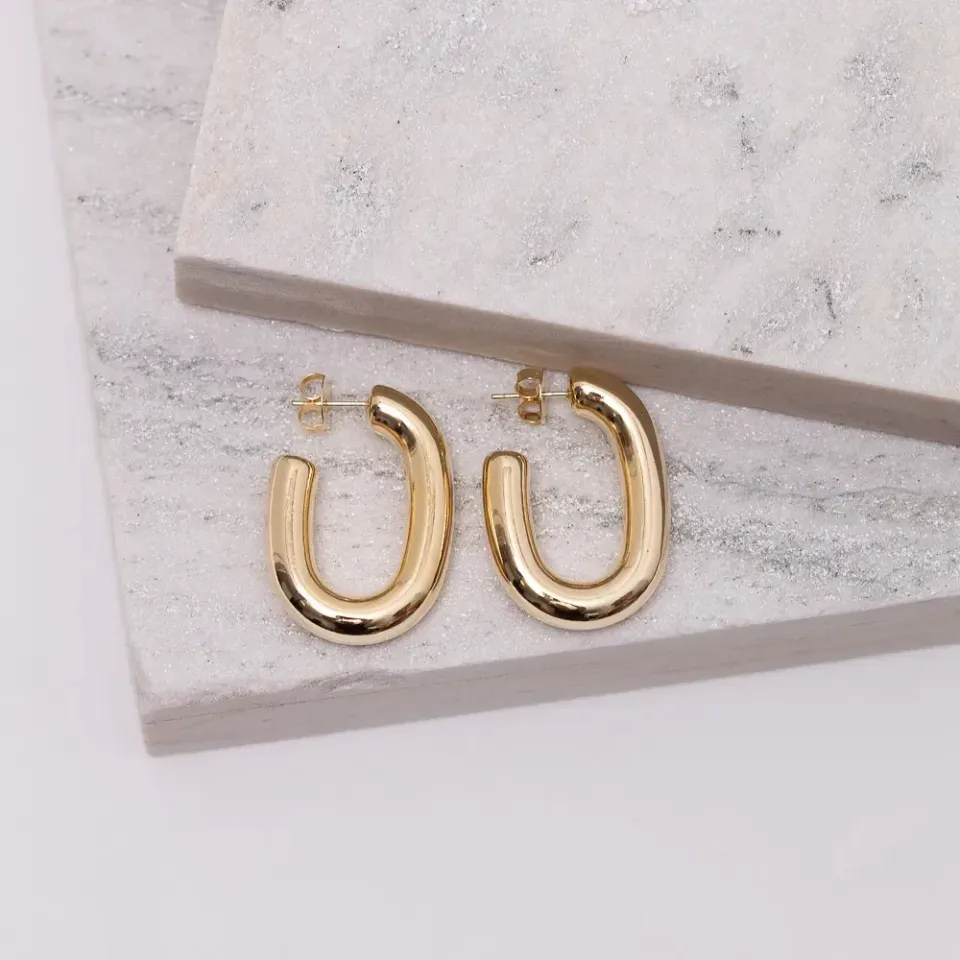BRINCO ARGOLA OVAL G BANHO OURO 18K