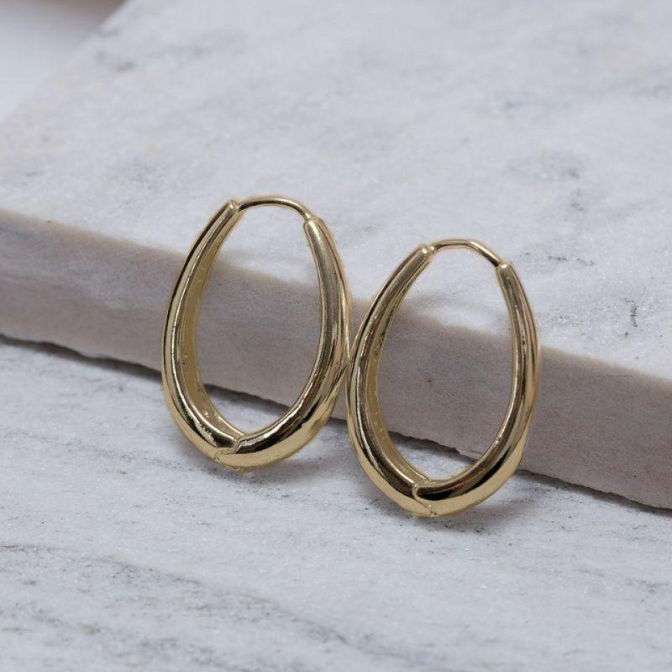 Brinco Argola Oval Grande Lisa em banho Ouro 18K