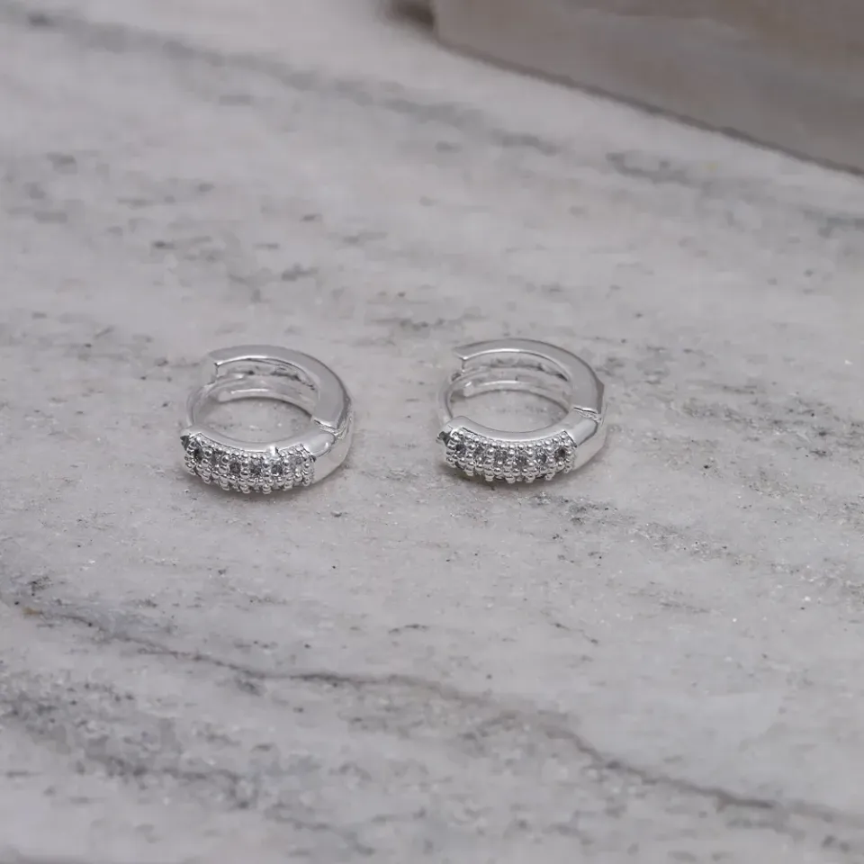 BRINCO ARGOLINHA P CRAVEJADA COM ZIRCÔNIAS BANHO PRATA