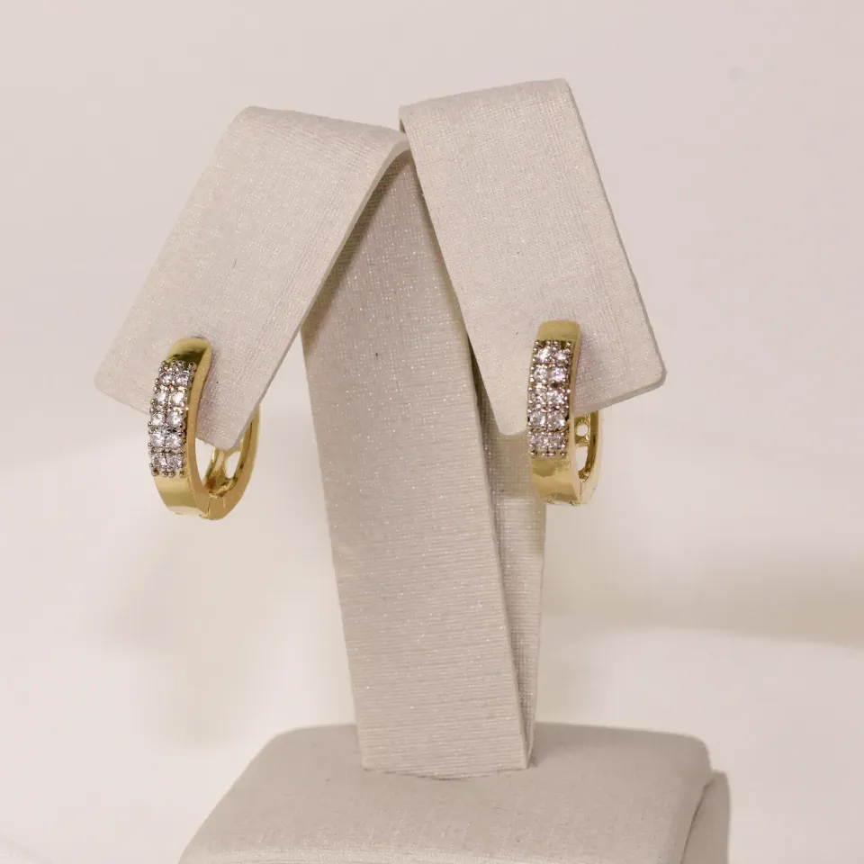 BRINCO ARGOLA PEQUENA CRAVEJADA COM ZIRCÔNIAS BRANCO BANHO OURO 18K
