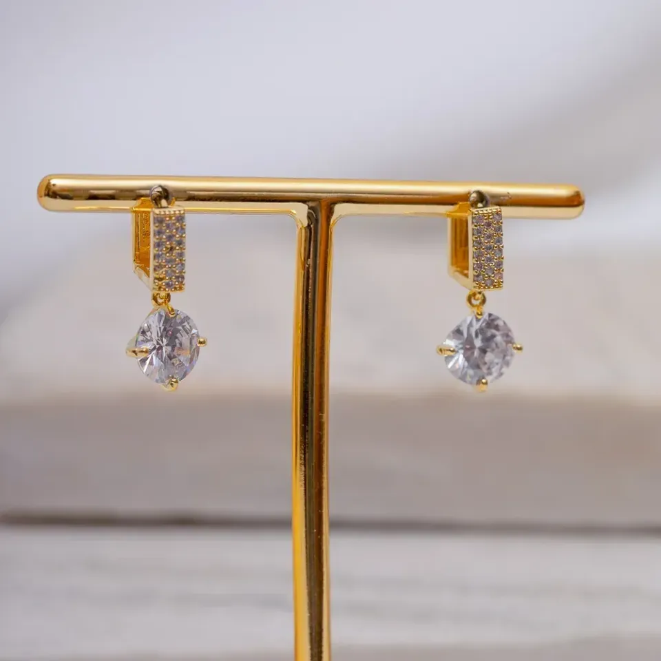 BRINCO ARGOLA QUADRADA CRAVEJADA COM ZIRCÔNIAS E PONTO DE LUZ CRISTAL BANHO OURO 18K