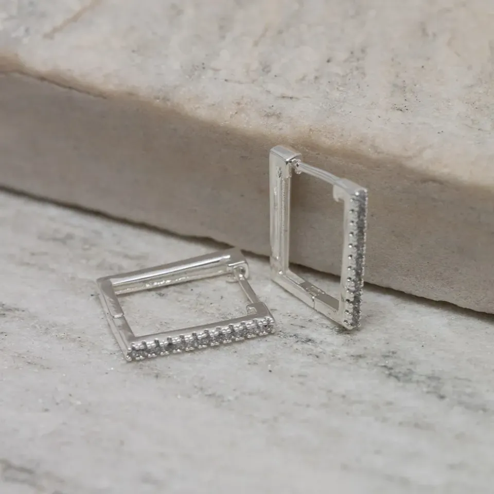 BRINCO ARGOLA QUADRADA ZIRCÔNIA P BANHO PRATA
