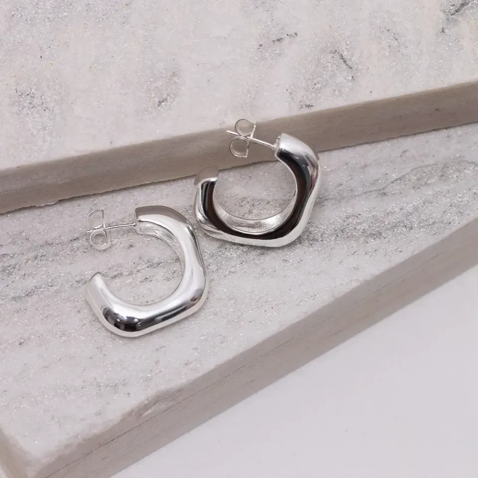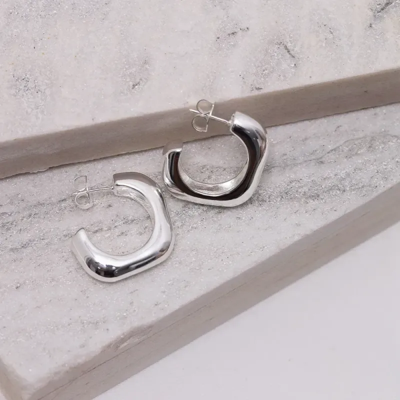 Brinco Argola Quadrada Abaulada Lisa em banho Prata