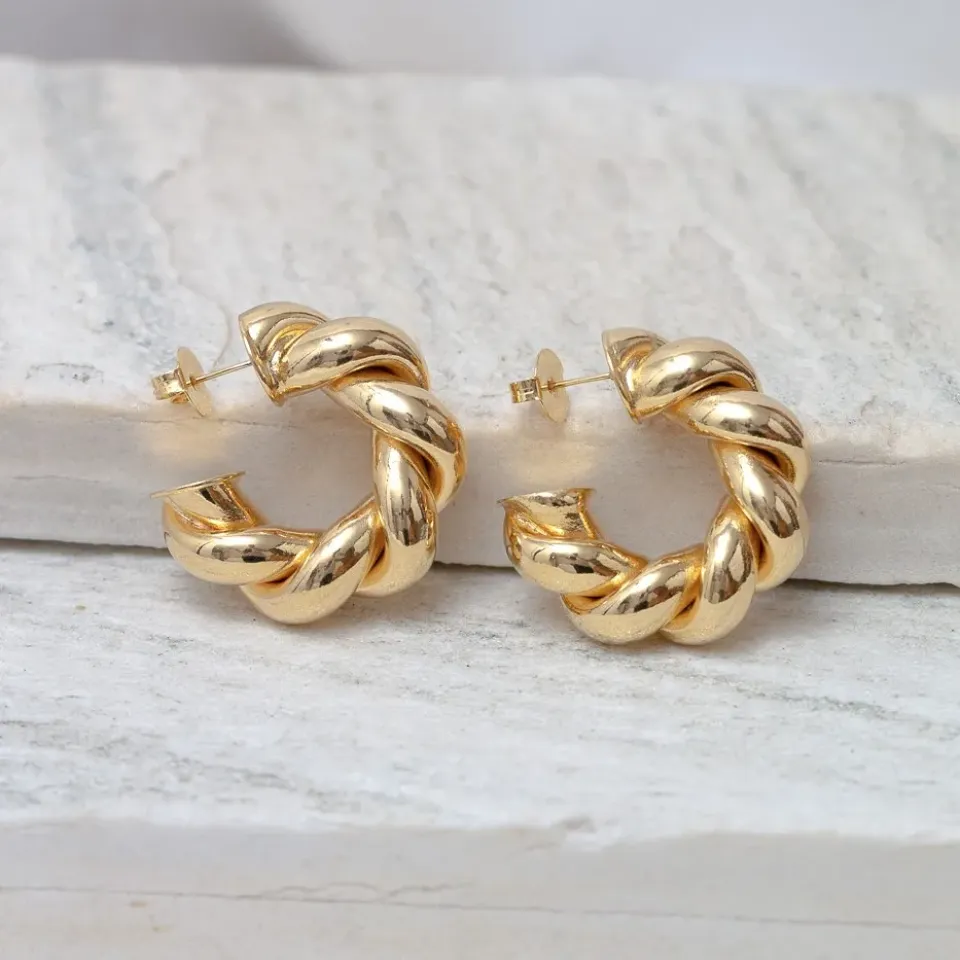 BRINCO ARGOLA RETORCIDA G BANHO OURO 18K