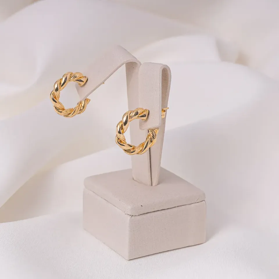 BRINCO ARGOLA RETORCIDA P BANHO OURO 18K