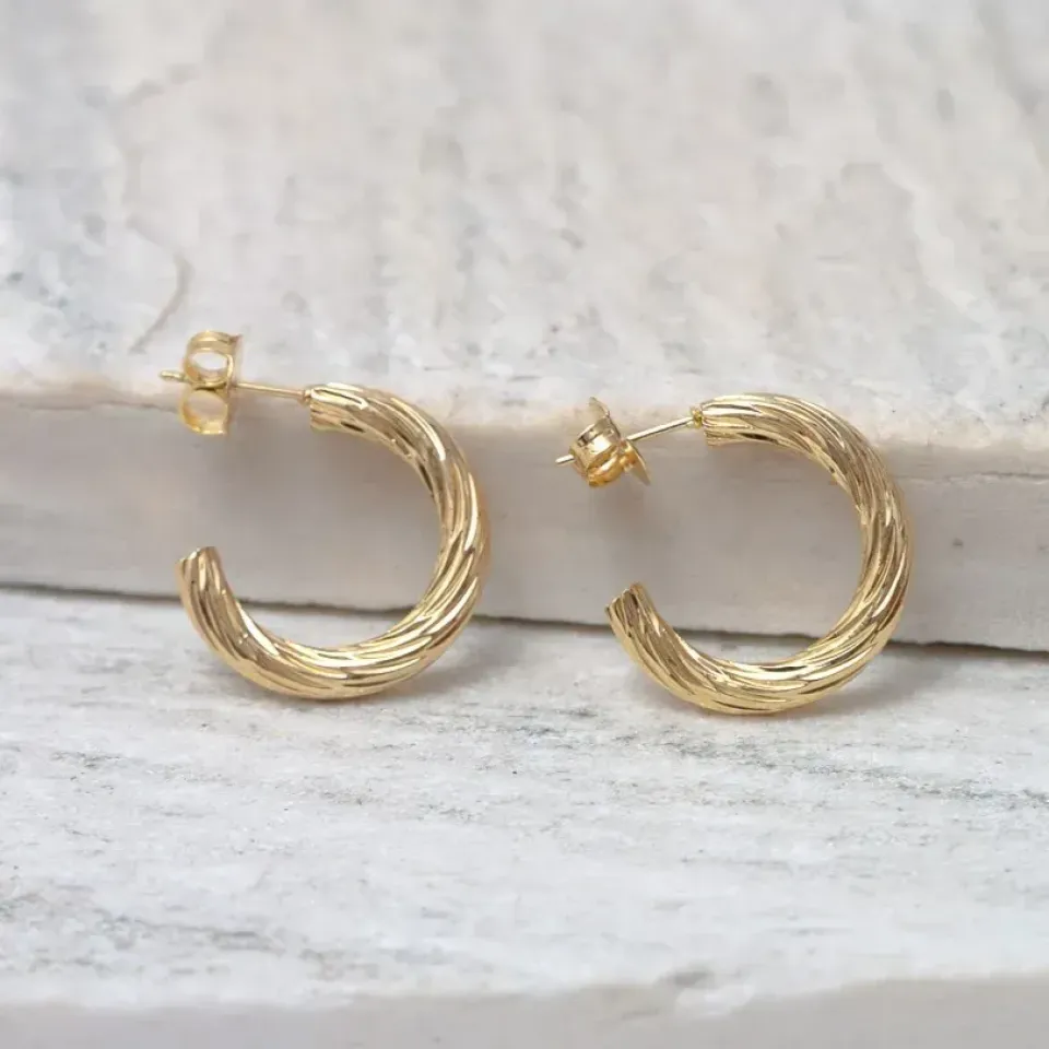 BRINCO ARGOLA TRABALHADA MÉDIA BANHO OURO 18K